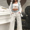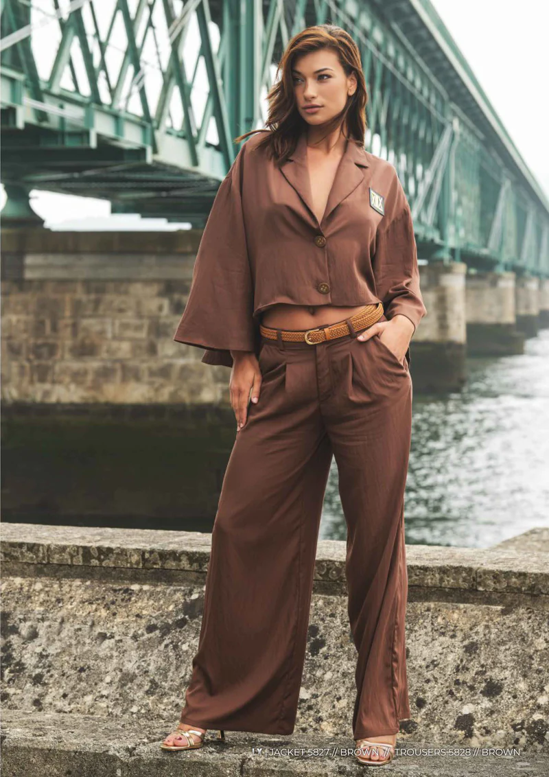 A jaqueta cropped de caimento leve combinada à calça fluida de cintura marcada cria um visual sofisticado, confortável e cheio de atitude — perfeito para quem busca estilo e exclusividade em qualquer ocasião.