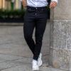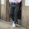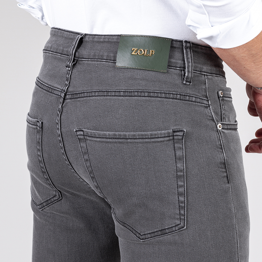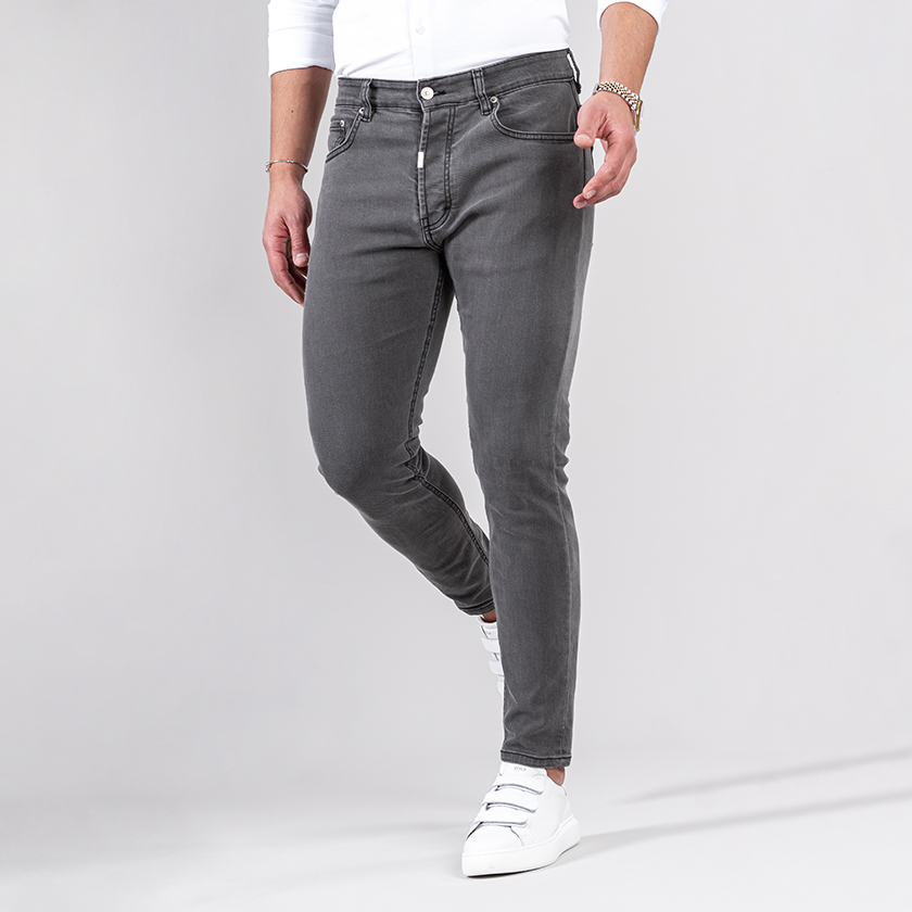 Calças de ganga cinzentas, confecionado em algodão, com corte slim fit, fecho com botão oculto por placket, design de cinco bolsos e presilhas para o cinto.