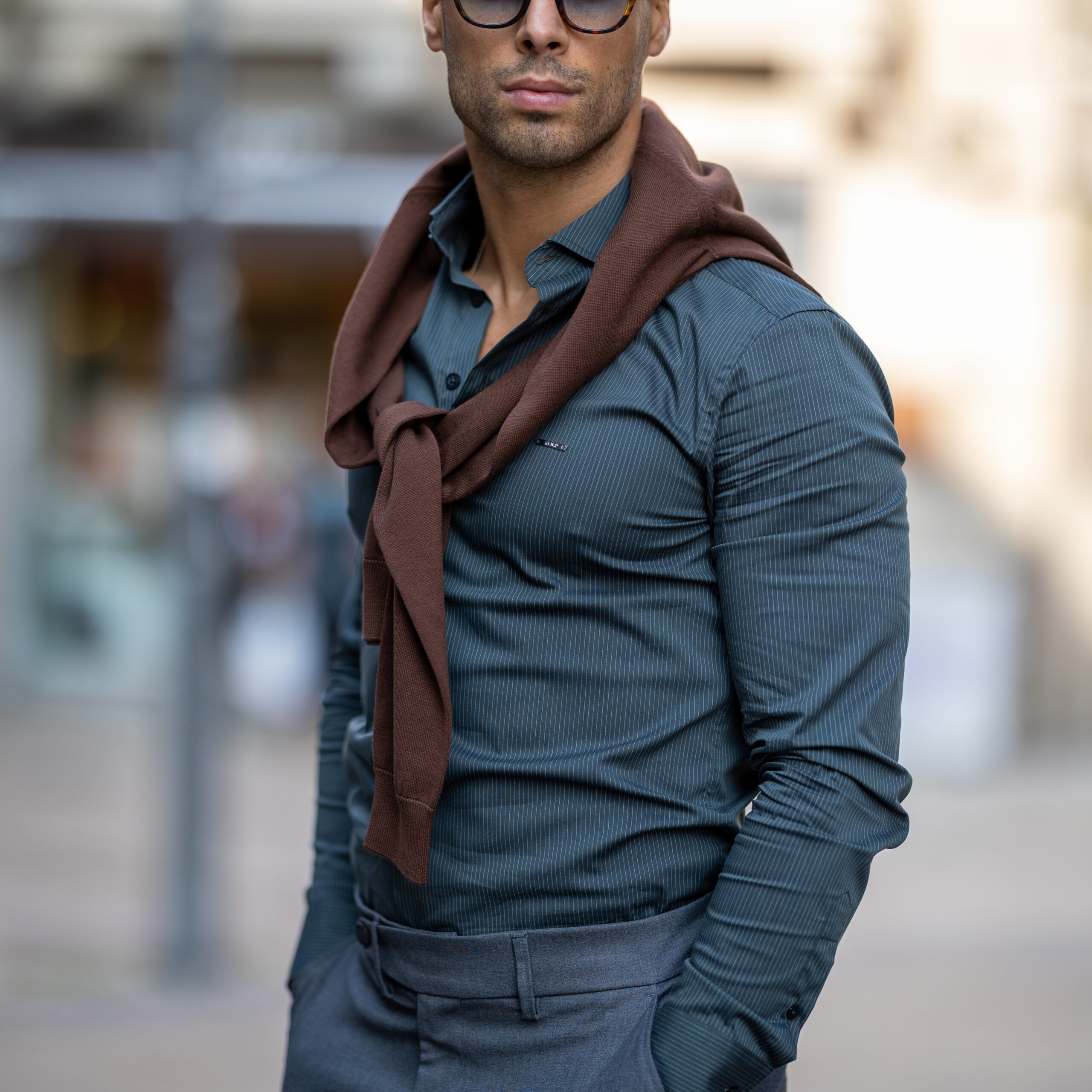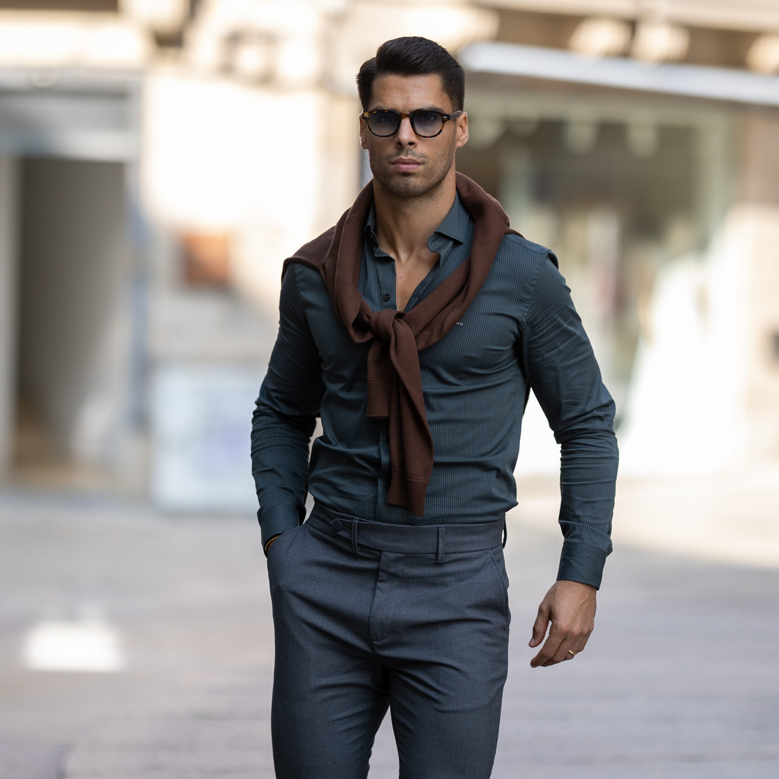 Camisa confecionada em tecido de algodão de procedência italiana, com corte slim fit e colarinho italiano.