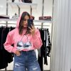Modelo oversized, crop-top.