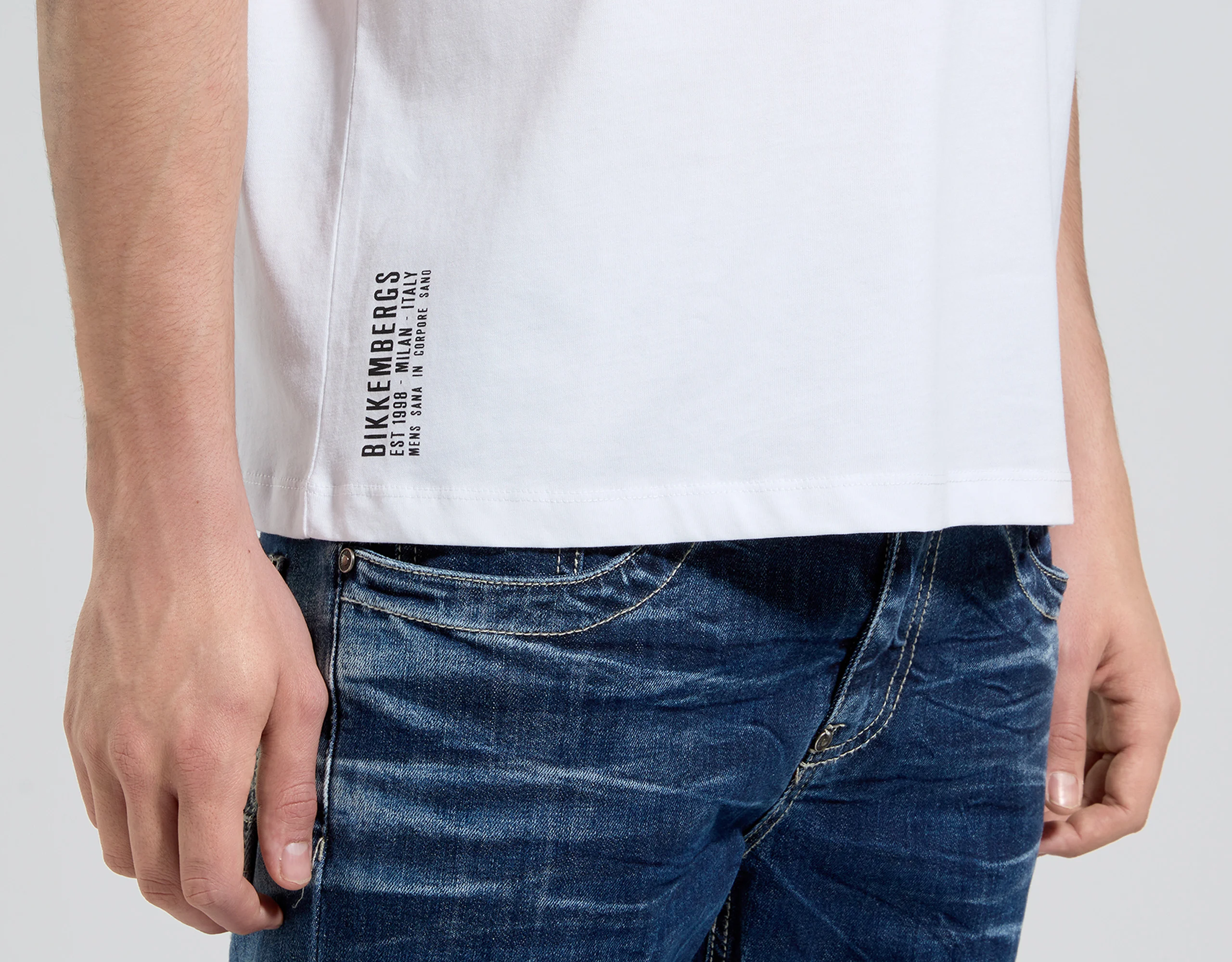 Caracterizada por uma estampa maxi tonal nas costas, esta camiseta masculina Bikkembergs é perfeita para esportes e atividades de lazer.